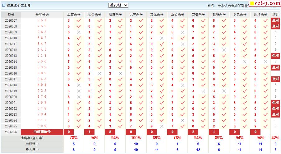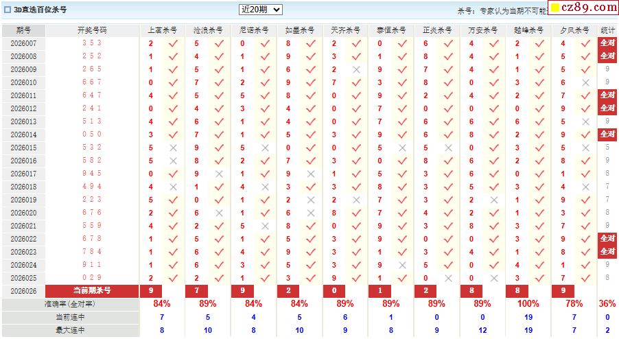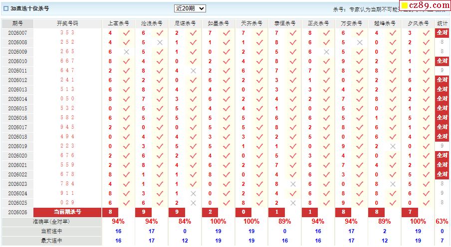 26年026期彩宝贝专家福彩3D杀号定码图表