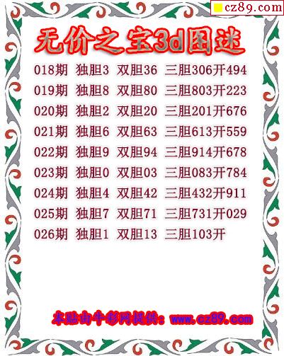 无价之宝送胆2026026期3d图谜(原创)
