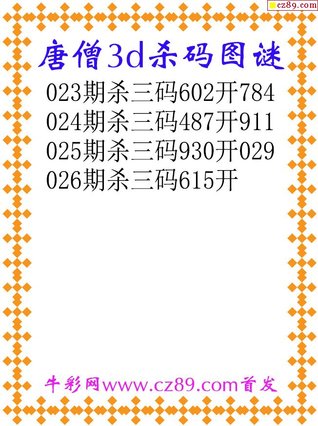 唐僧杀码26026期3d原创图谜