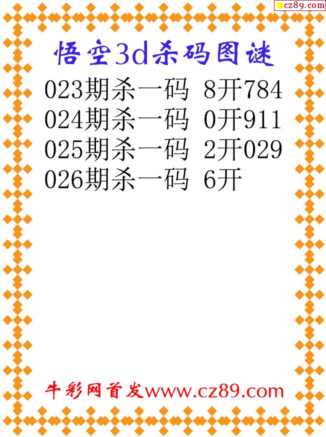 2026年026期牛彩网体彩P3画迷图谜汇总分享