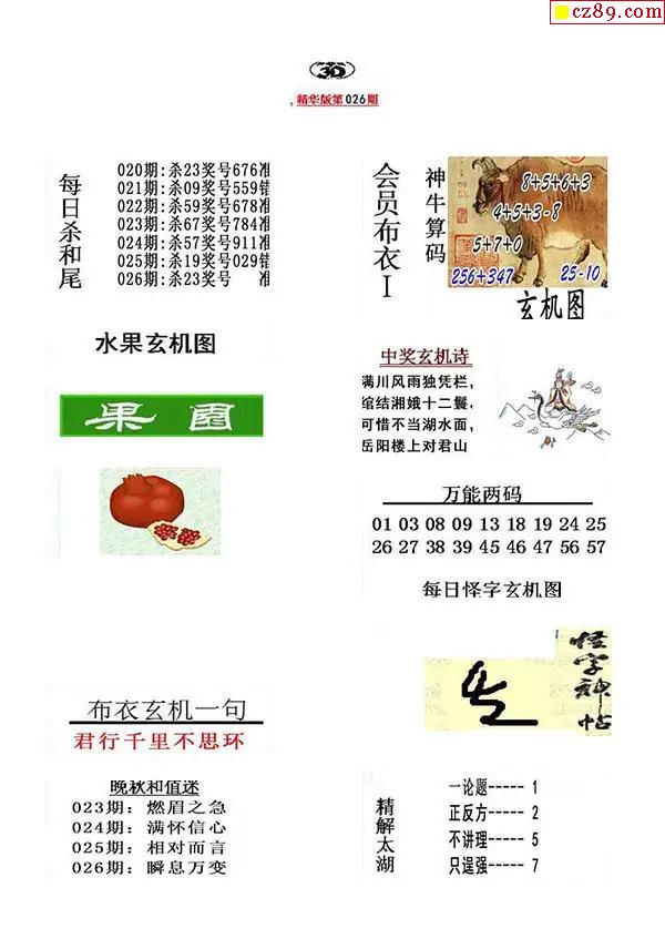 2026026期真精华布衣123456