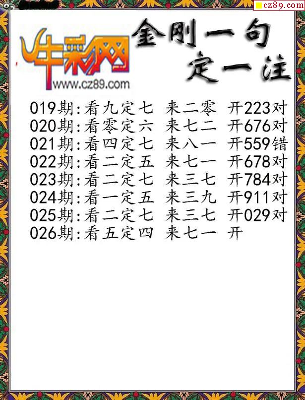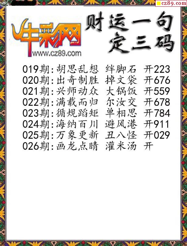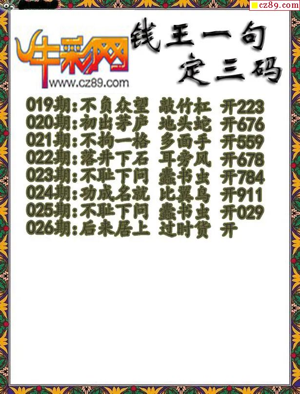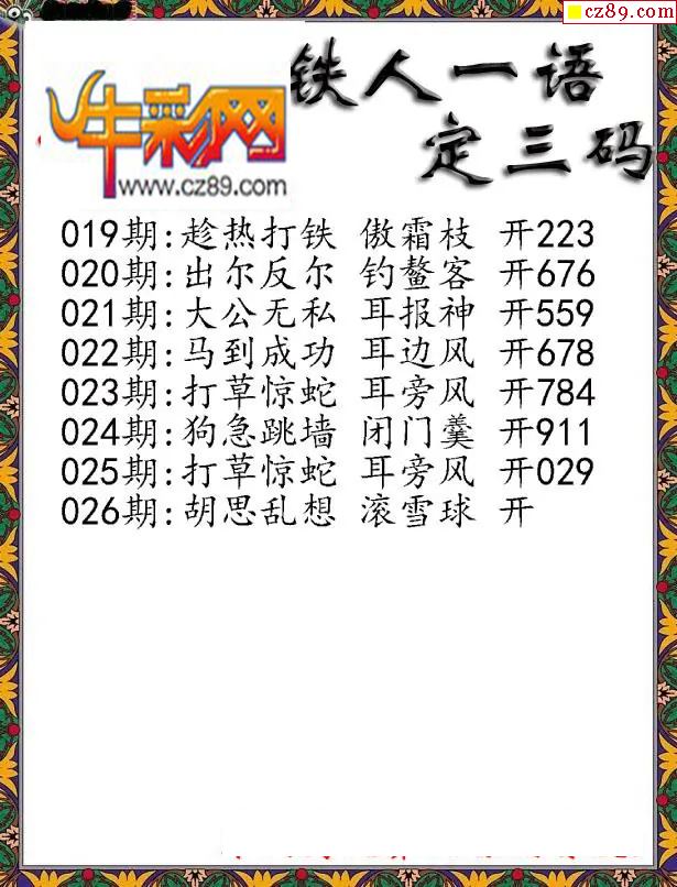 牛彩版3D字谜彩报图26年026期打印版