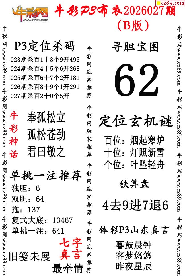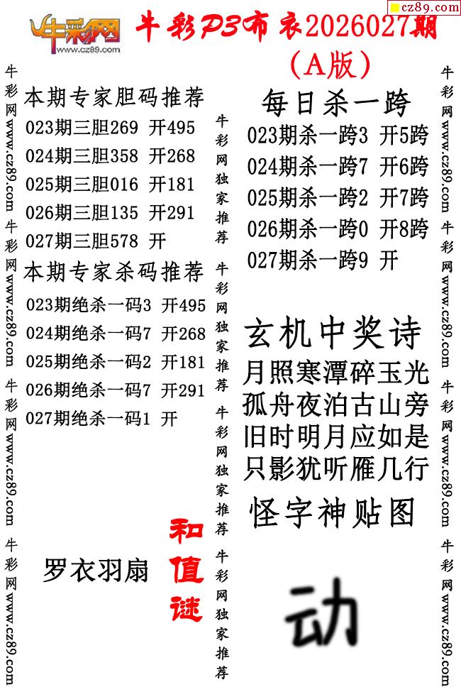 牛彩P3布衣26年027期AB版图谜(精华版)