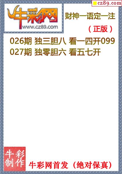26年027期牛mo王一句定三码(原创正版)
