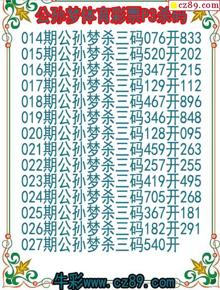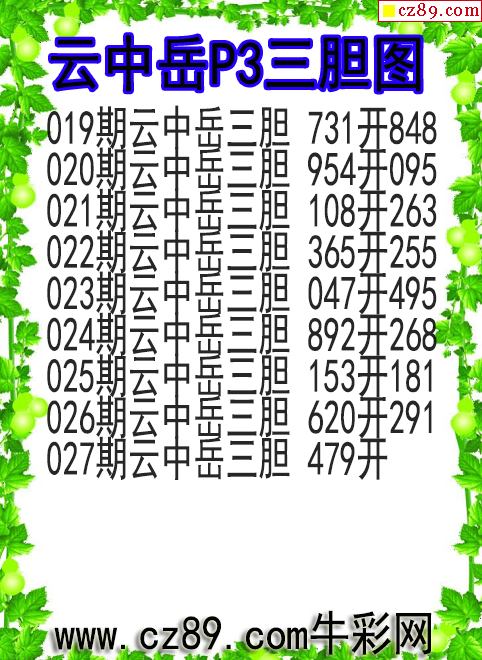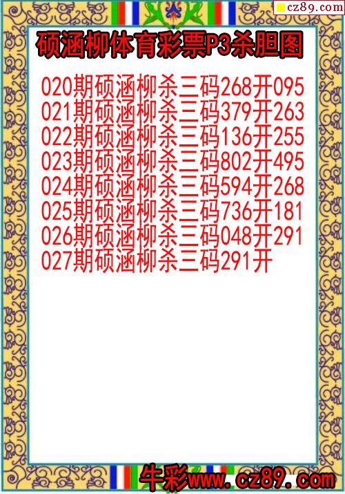 2026年027期牛彩网体彩P3画迷图谜汇总分享