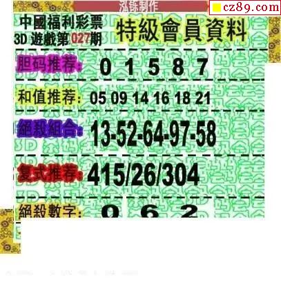 吕布杀码2026027期今日3d图谜