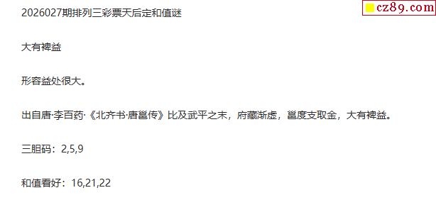 彩票天后p3定和值谜26年027期