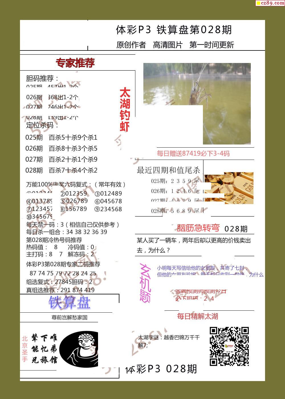 铁算盘028期体彩p3图谜
