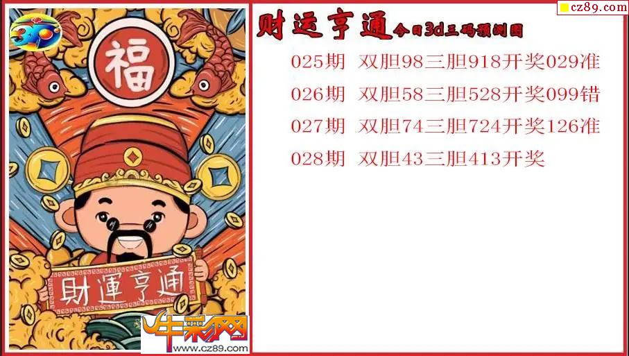 26年028期3d 财运亨通今日三码预测图