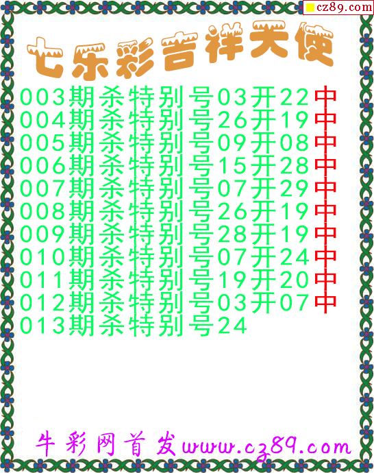 七乐彩2026013期流光岁月杀码图谜 10中3