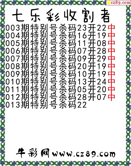 七乐彩2026013期流光岁月杀码图谜 10中3