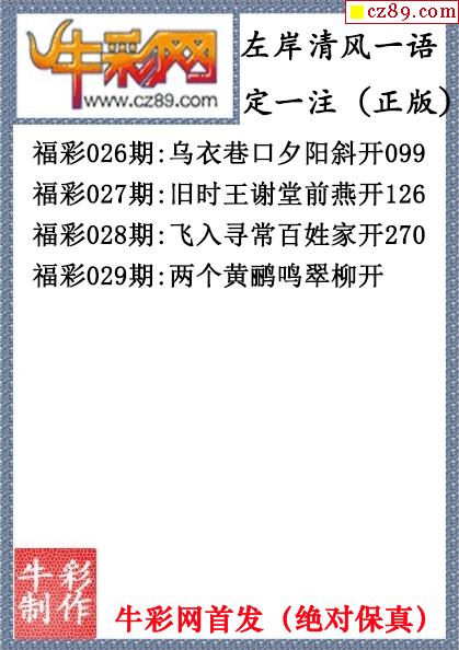 26年029期左岸清风一语定一注(原创正版)