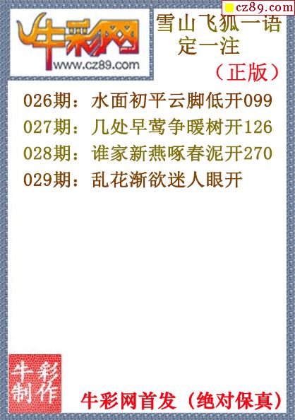26年029期牛mo王一句定三码(原创正版)
