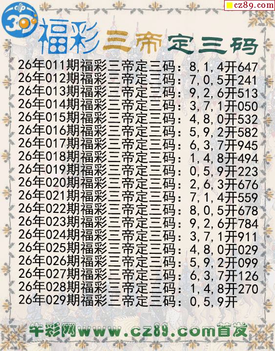 福彩三帝定三码029期3d图谜