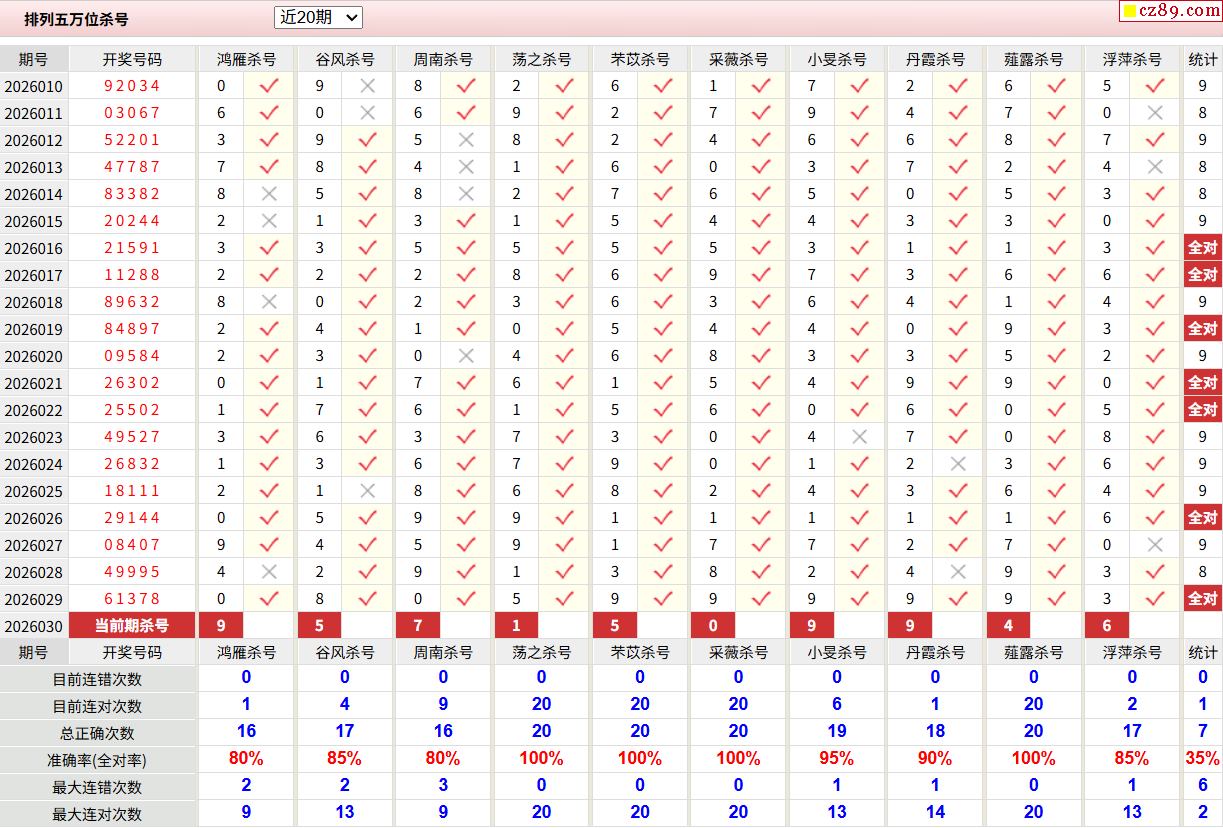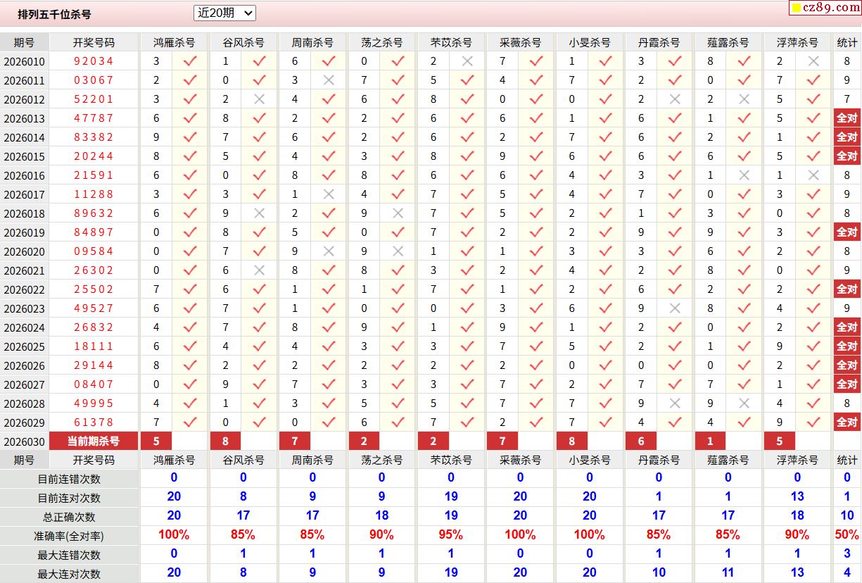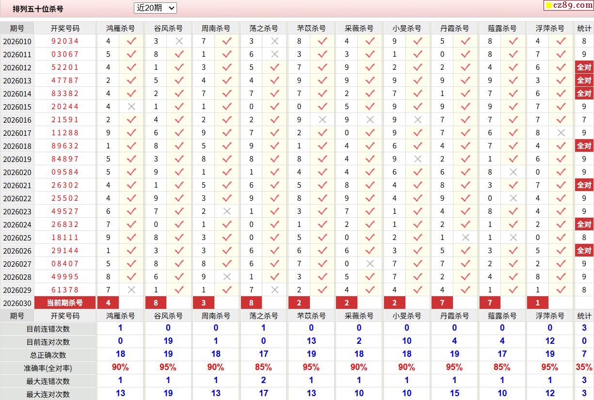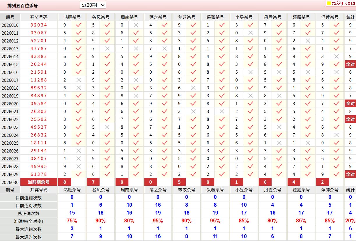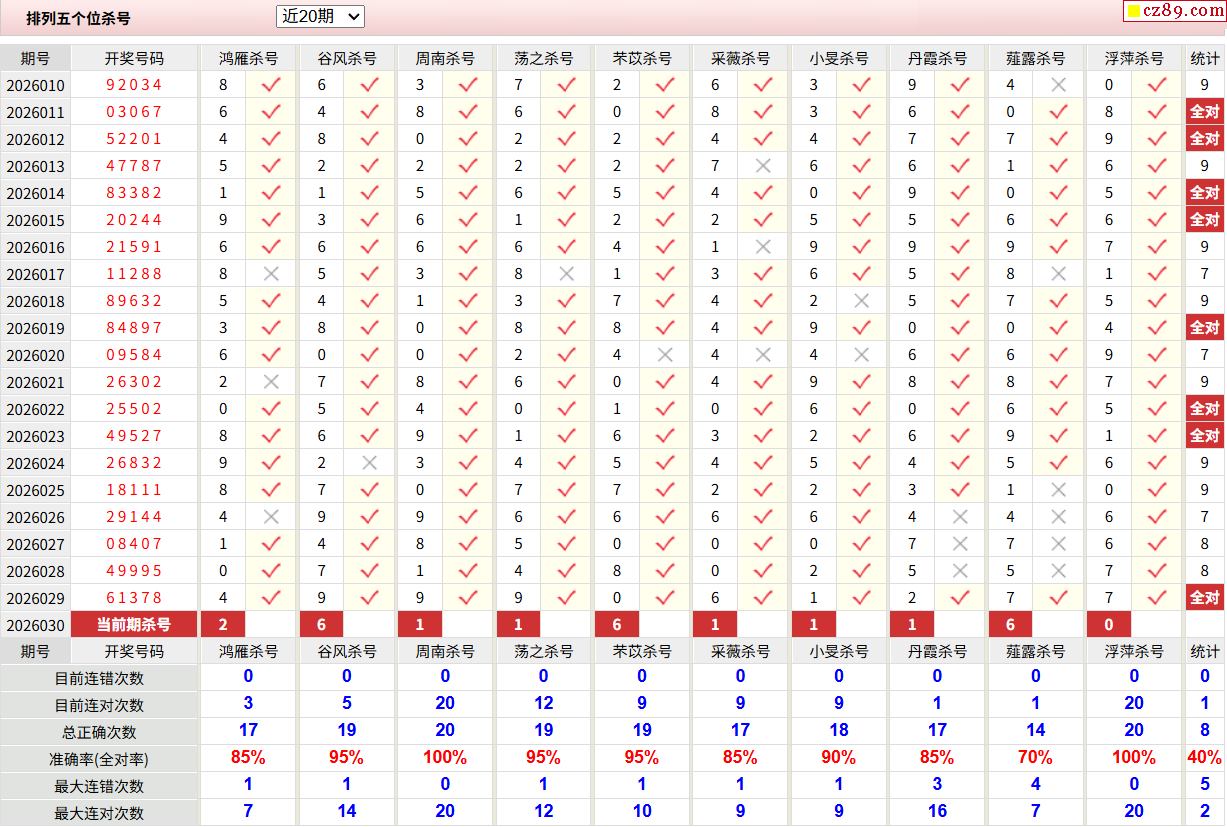 26年030期彩宝贝专家体彩P3杀号定码图表