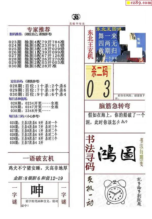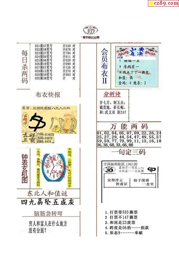 牛彩版3D字谜彩报图26年030期打印版