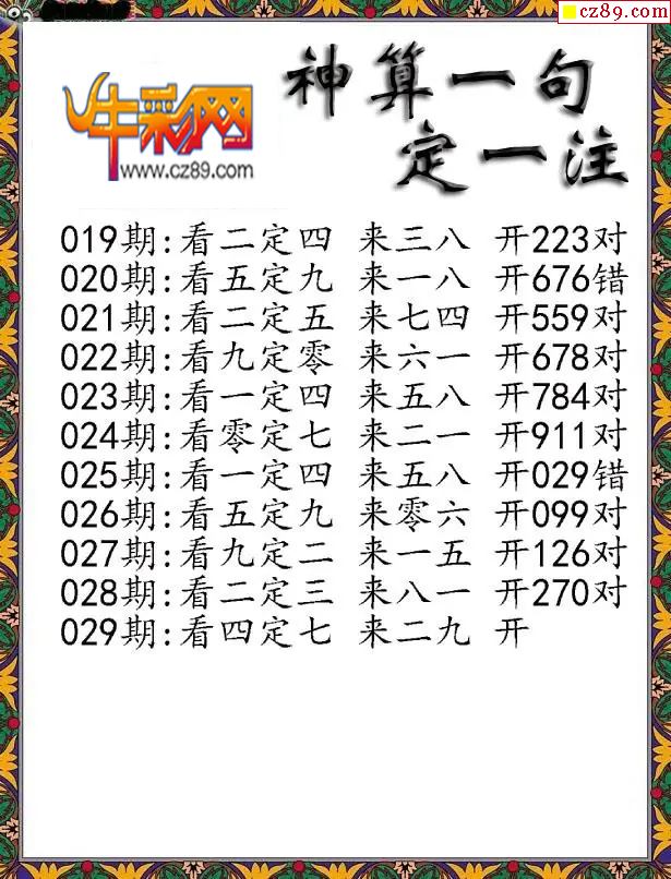 2026033期牛彩专家一句定三码彩报
