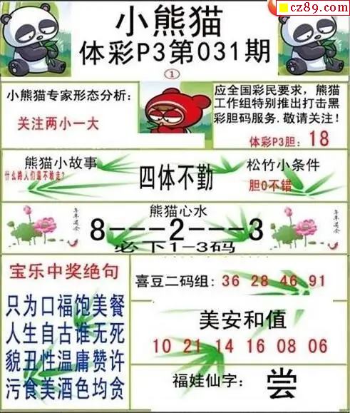 2026年031期牛彩网体彩P3画迷图谜汇总分享