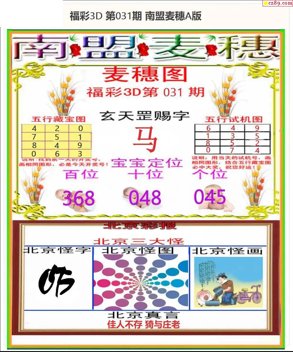 福彩3D2026031期南盟麦穗AB版+南盟扣号AB版