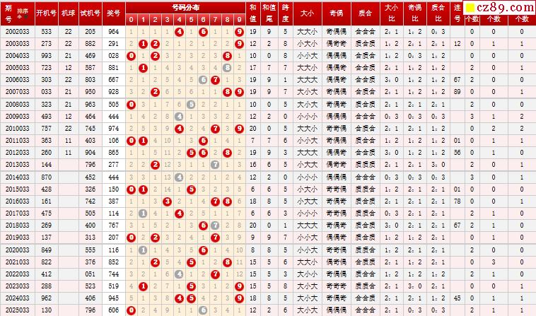 第033期福彩3D历史同期对比