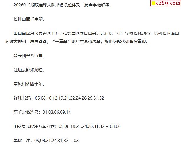 双色球015期 贾宝玉杀蓝号图谜 10中9