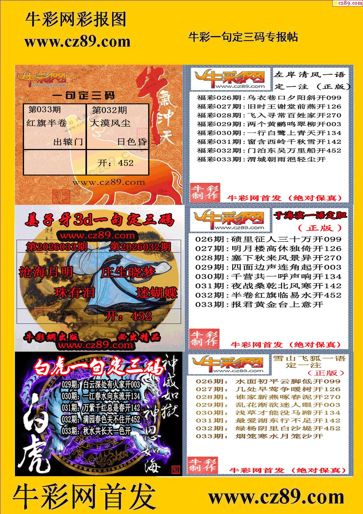 2026033期牛彩专家一句定三码彩报