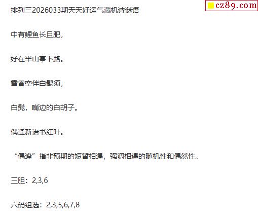 2026年藏机图033期 正版体彩P3藏机图诗汇总