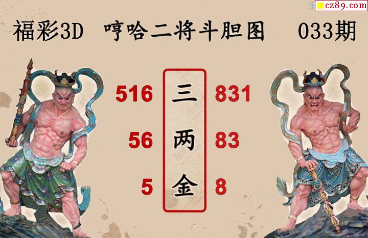福彩3D2026033期 白鱼舟3D图谜哼哈二将斗胆图