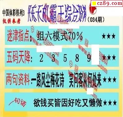 e族2026年034期体彩排列3图谜