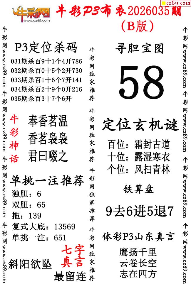牛彩P3布衣26年035期AB版图谜(精华版)