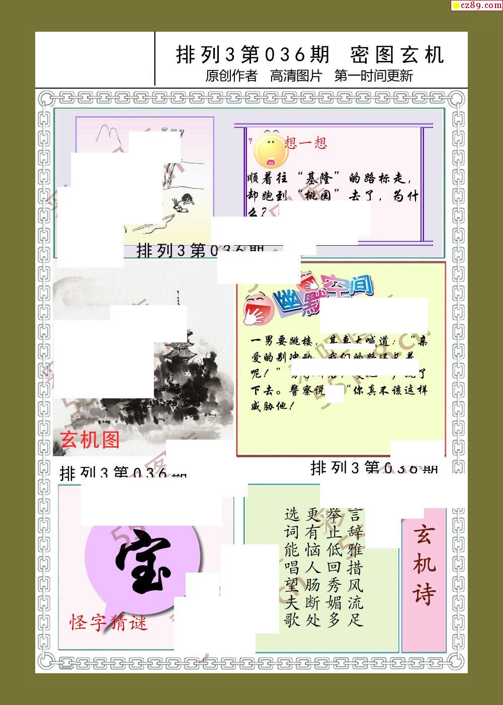 密图玄机036期体彩p3图谜