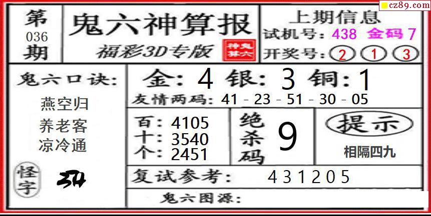 鬼六神算2026036期3d图谜