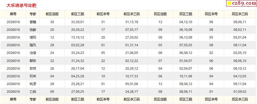 大乐透016期牛彩特邀专家前区后区杀号定胆图表
