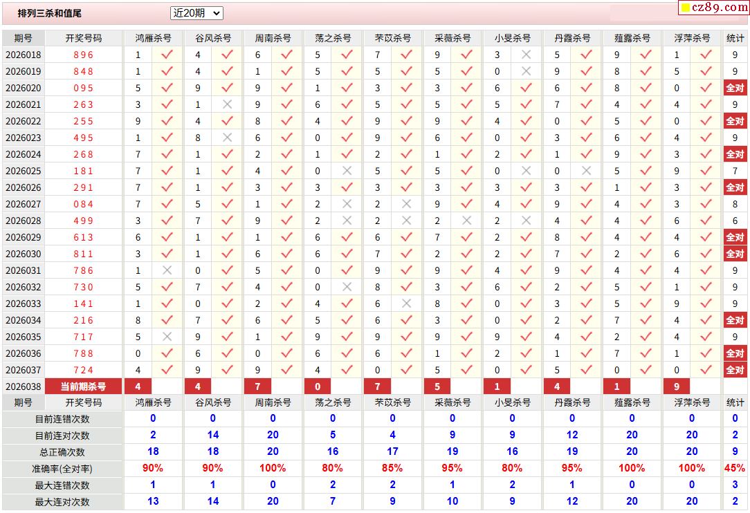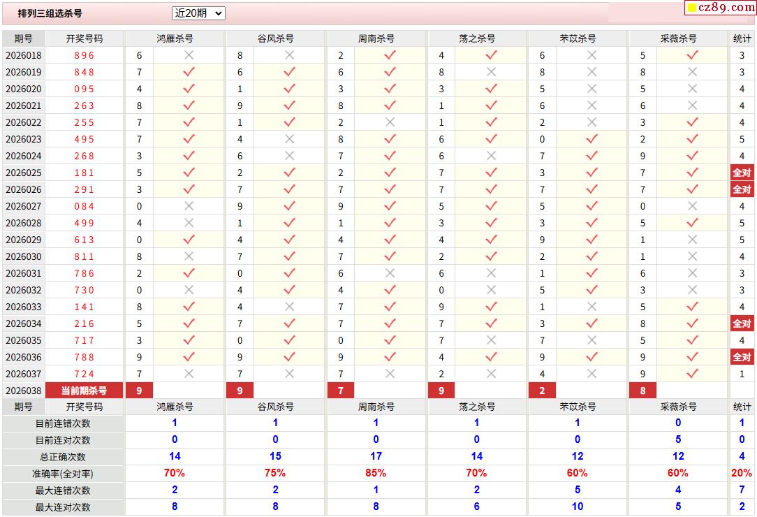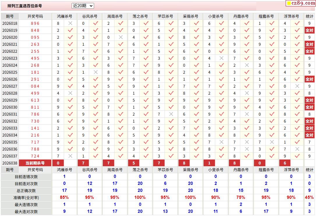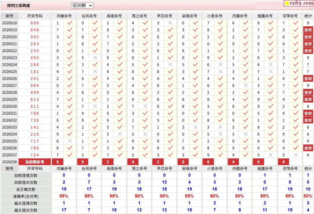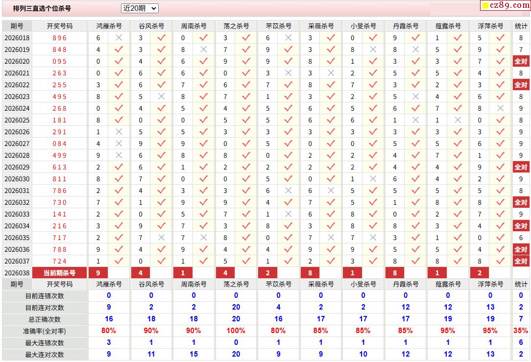 26年038期彩宝贝专家体彩P3杀号定码图表