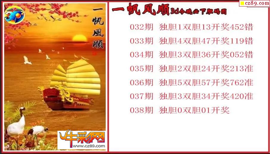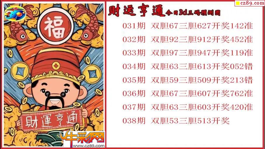 038期福彩3D开机号950对应码624牛彩关注数219金码7