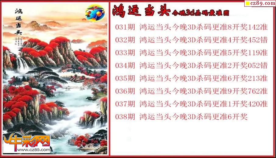 牛彩版3D预测彩报图26年038期打印版