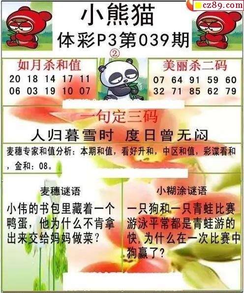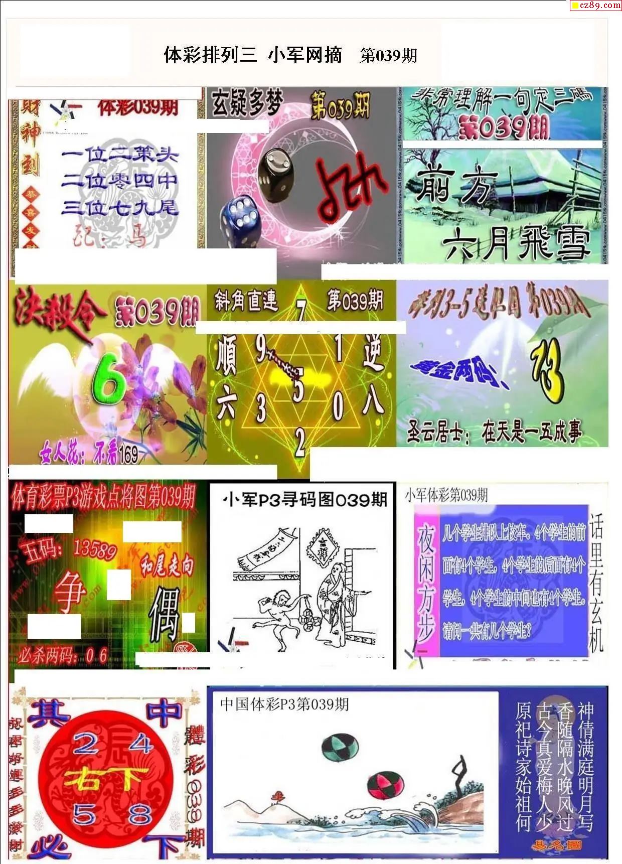 2026年039期牛彩网体彩P3画迷图谜汇总分享