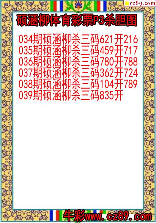 2026年039期牛彩网体彩P3画迷图谜汇总分享