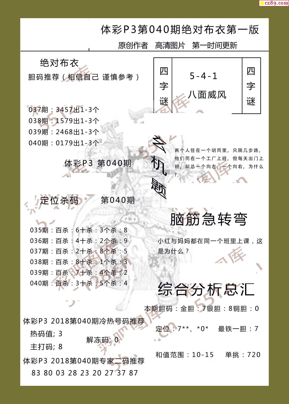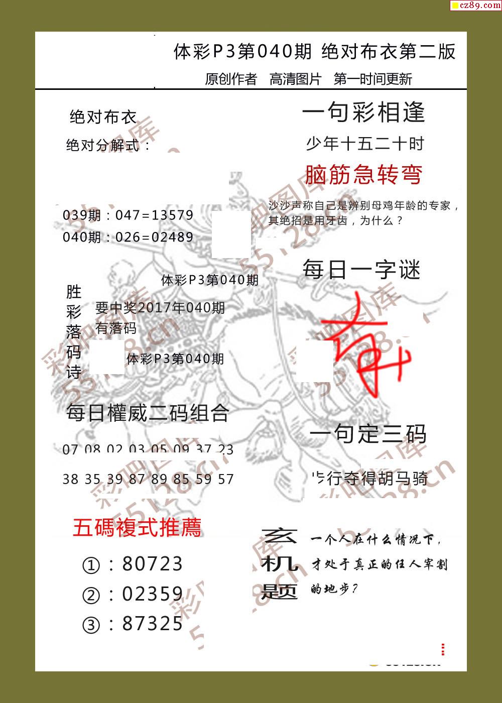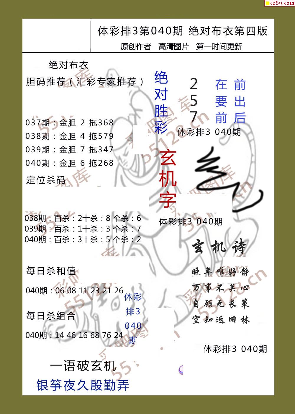 绝对布衣040期体彩p3图谜
