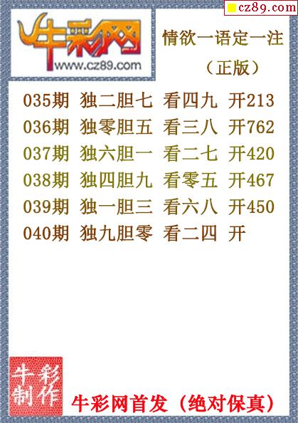 2026年040期白娘子3d跨度字谜【牛彩网特...