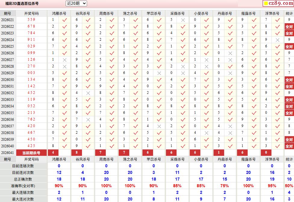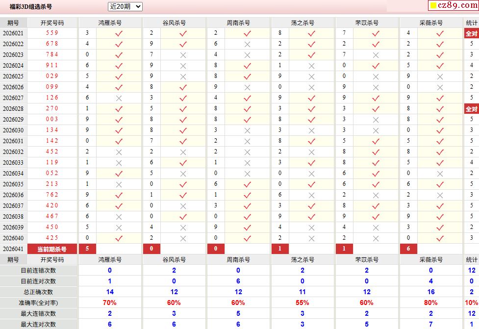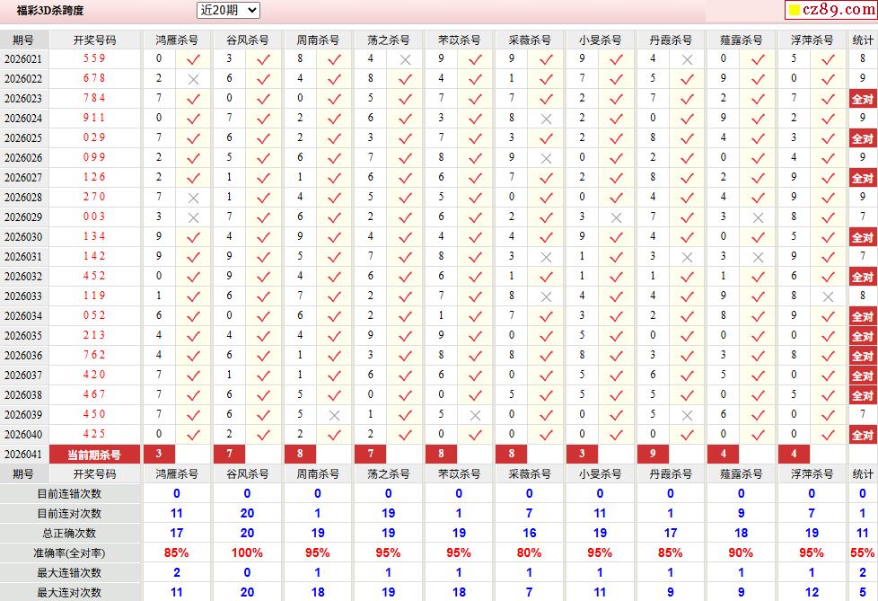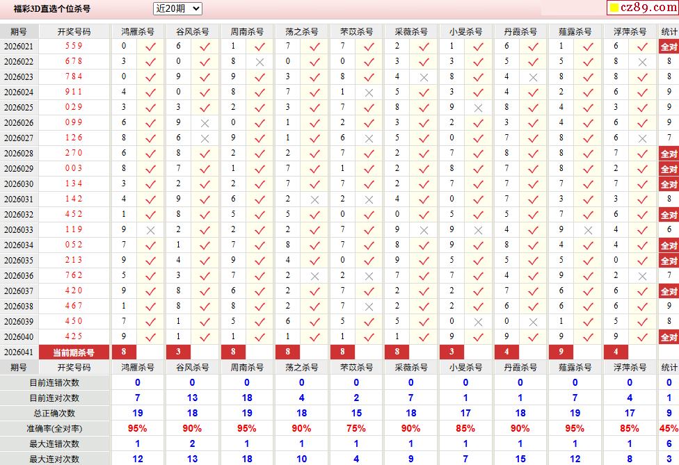 26年041期彩宝贝专家福彩3D杀号定码图表