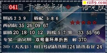 3D 《天天彩》每日号码精选胆124 精选看好24