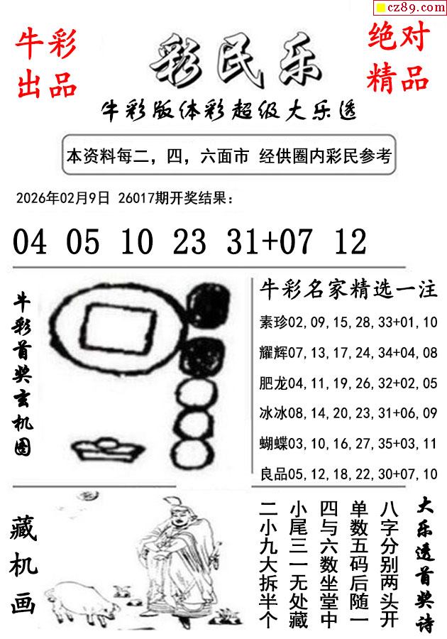 大乐透018期牛彩特邀专家前区后区杀号定胆图表