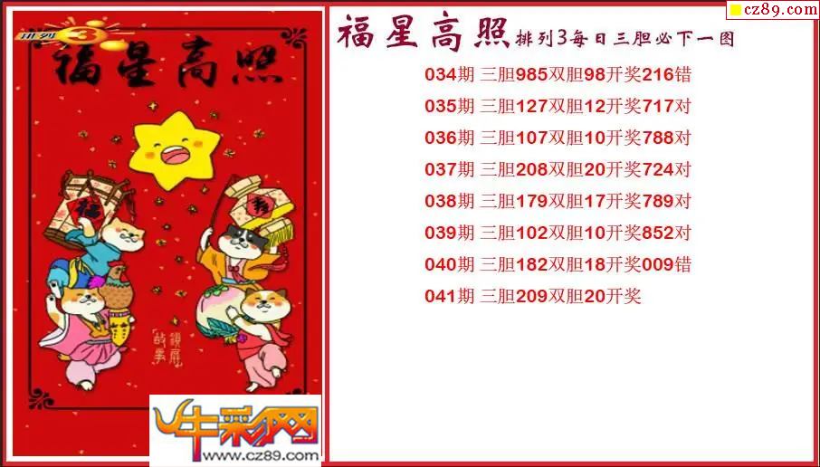 2026年041期牛彩网体彩P3画迷图谜汇总分享