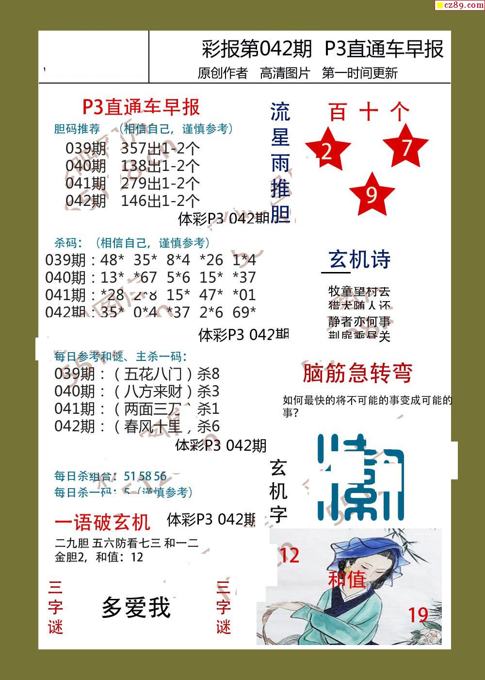 直通车早版042期体彩p3图谜