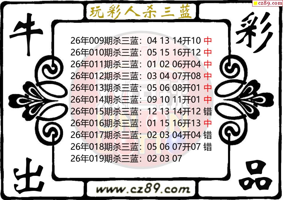 双色球019期 玩彩人杀三蓝图谜 10中7