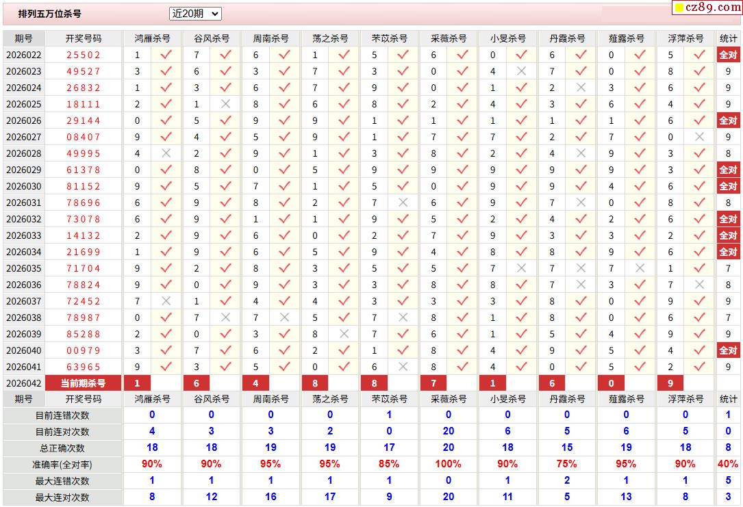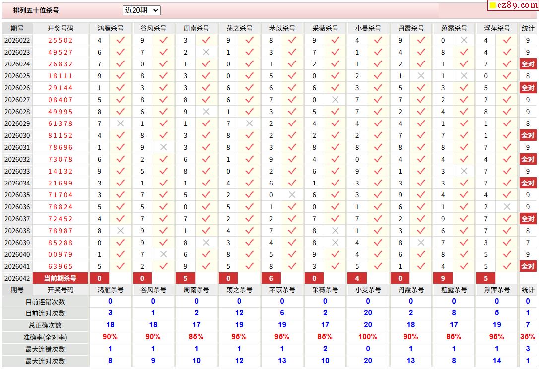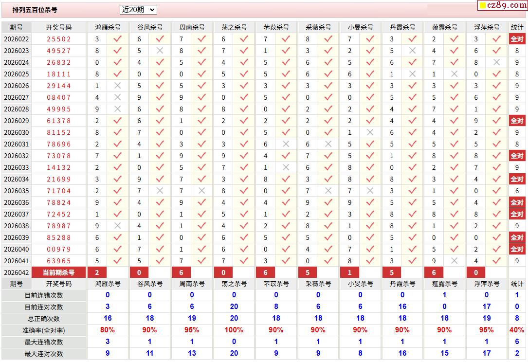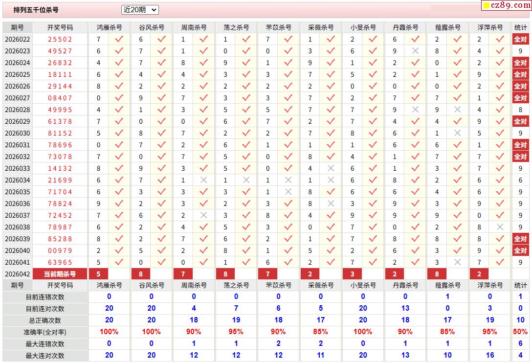 26年042期彩宝贝专家体彩P3杀号定码图表