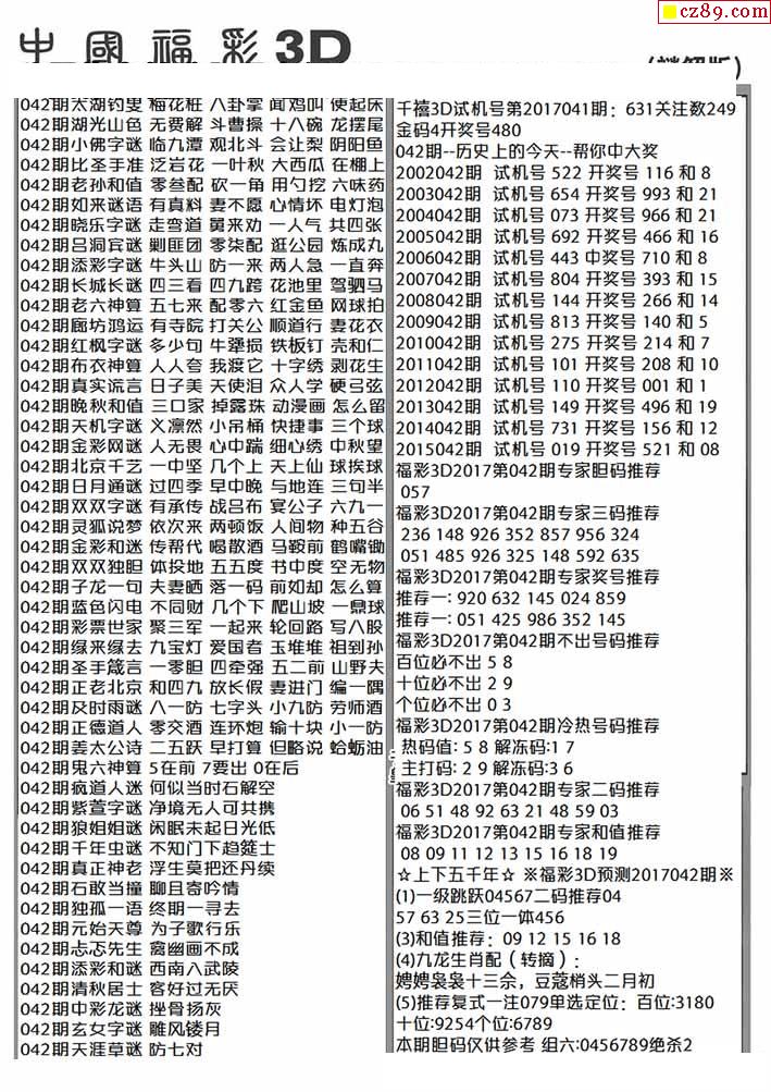 2026042期3D图谜汇总(一)