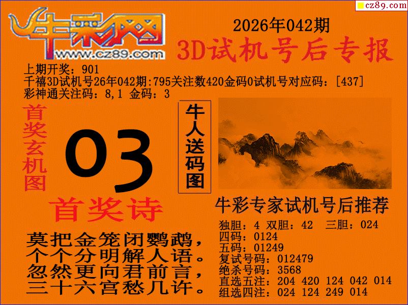 牛彩版3D预测彩报图26年042期打印版