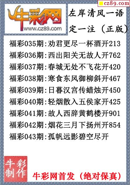 2026年043期七绝圣手3d和尾字谜【牛彩网...